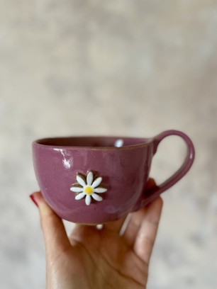 Kolor naczynia: różowy. Odcień podkreśla motyw kwiatu i charakter ceramiki handmade.