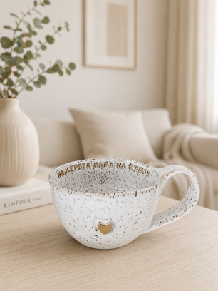 Filiżanka ceramiczna stracciatella 300 ml z napisem „Najlepsza mama na świecie” to wyjątkowy, ręcznie wykonany kubek z afirmacją, stworzony jako prezent dla mamy. Złote serduszko dodaje jej elegancji i symbolicznego charakteru. Produkt dostępny od ręki – wysyłka w 24 godziny.
