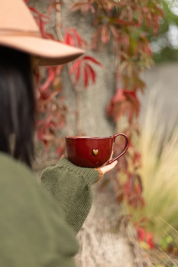 Ręcznie robiona filiżanka ceramiczna z afirmacją o pojemności 300 ml w kolorze bordowym.