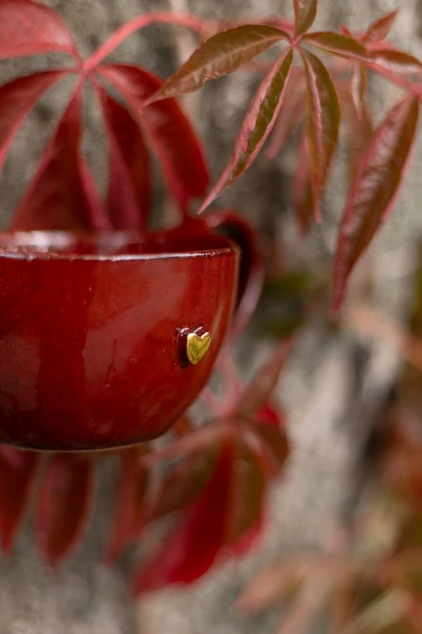 Bordowa filiżanka z afirmacją to kwintesencja elegancji w wersji handmade.