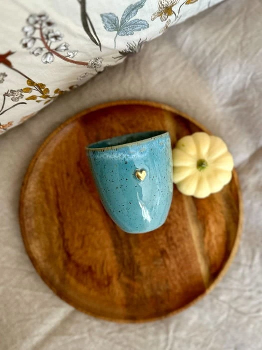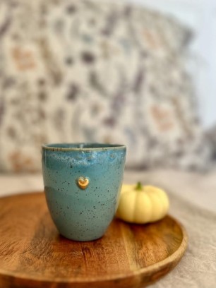 Czarka ceramiczna 150 ml turkusowa ze złotym serduszkiem