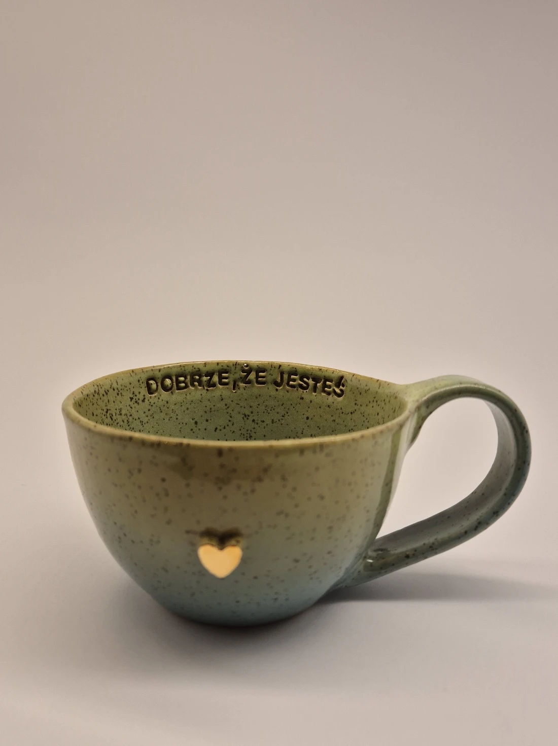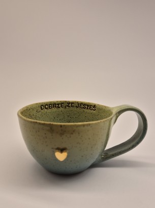 FILIŻANKA CERAMICZNA 300 ML LIMONKOWO-TURKUSOWA Z AFIRMACJĄ - DOBRZE, ŻE JESTEŚ