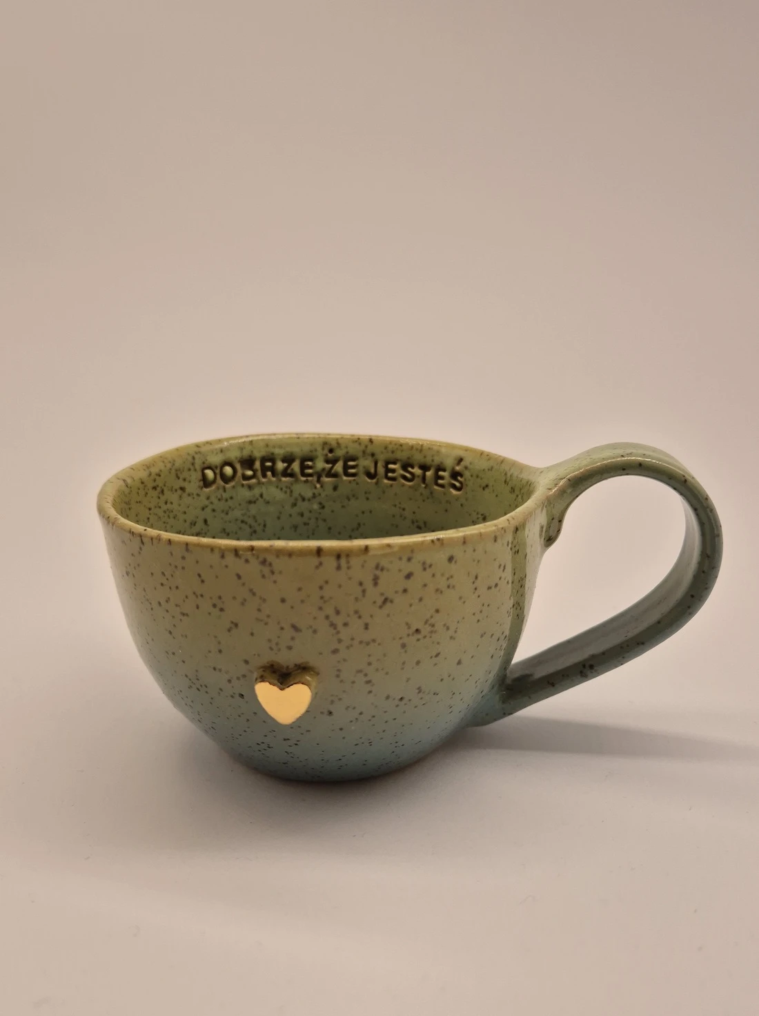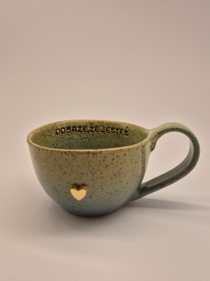 FILIŻANKA CERAMICZNA 300 ML LIMONKOWO-TURKUSOWA Z AFIRMACJĄ - DOBRZE, ŻE JESTEŚ