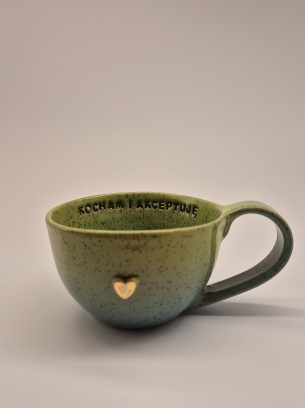 FILIŻANKA CERAMICZNA 300 ML LIMONKOWO-TURKUSOWA Z AFIRMACJĄ - KOCHAM I AKCEPTUJĘ