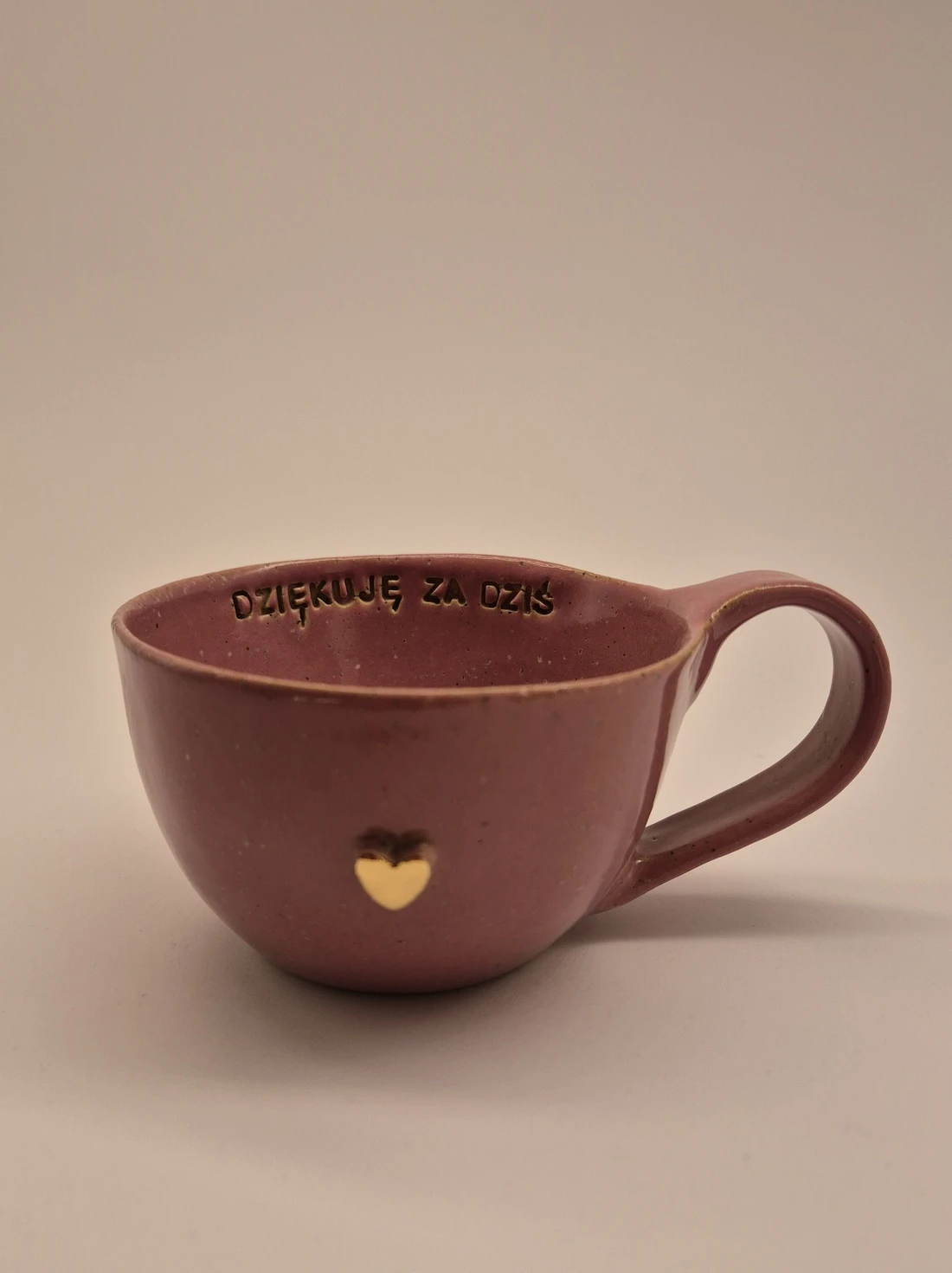 FILIŻANKA CERAMICZNA 300 ML RÓŻOWA Z AFIRMACJĄ - DZIĘKUJĘ ZA DZIŚ