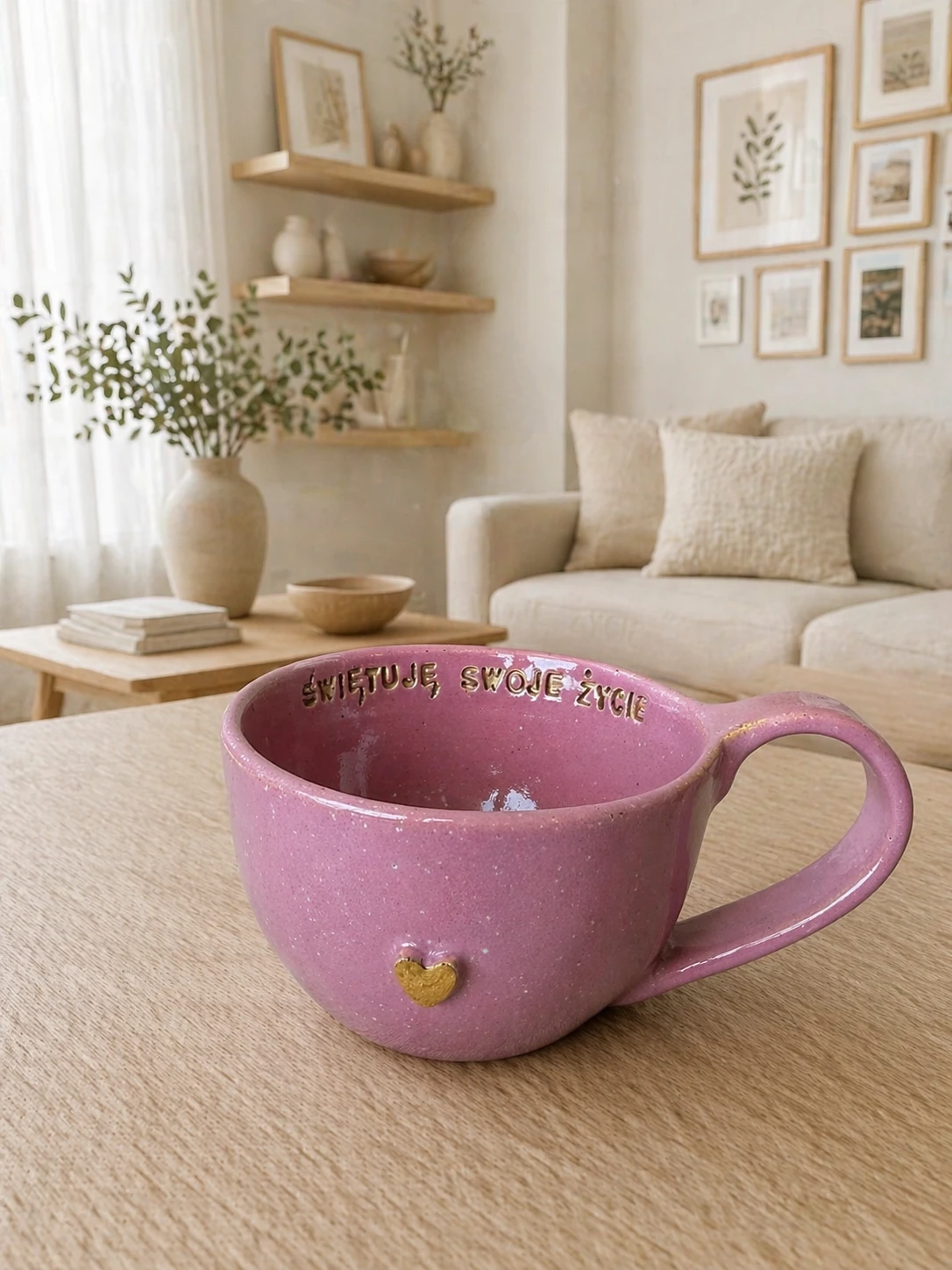 Filiżanka ceramiczna 300 ml różowa z afirmacją - Świętuję swoje życie