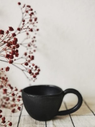 Mała filiżanka na podwójne espresso o pojemności 100ml. Filiżanka malowana jest czarnym matowym szkliwem.