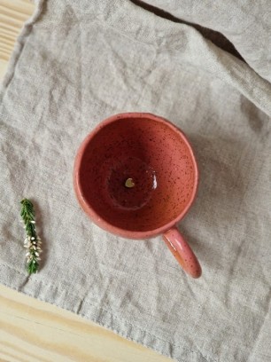 Filiżanka z kolekcji Rainbow w kolorze różowo- malinowym, ze złotym serduszkiem na dnie o pojemności około 100ml idealna na podwójne espresso. Filiżanka, która do Ciebie trafi, lepiona jest ręcznie. Nosi ślady naszych rąk i posiada krzywizny, które przypominają o unikatowości każdej pracy, którą stworzyliśmy.