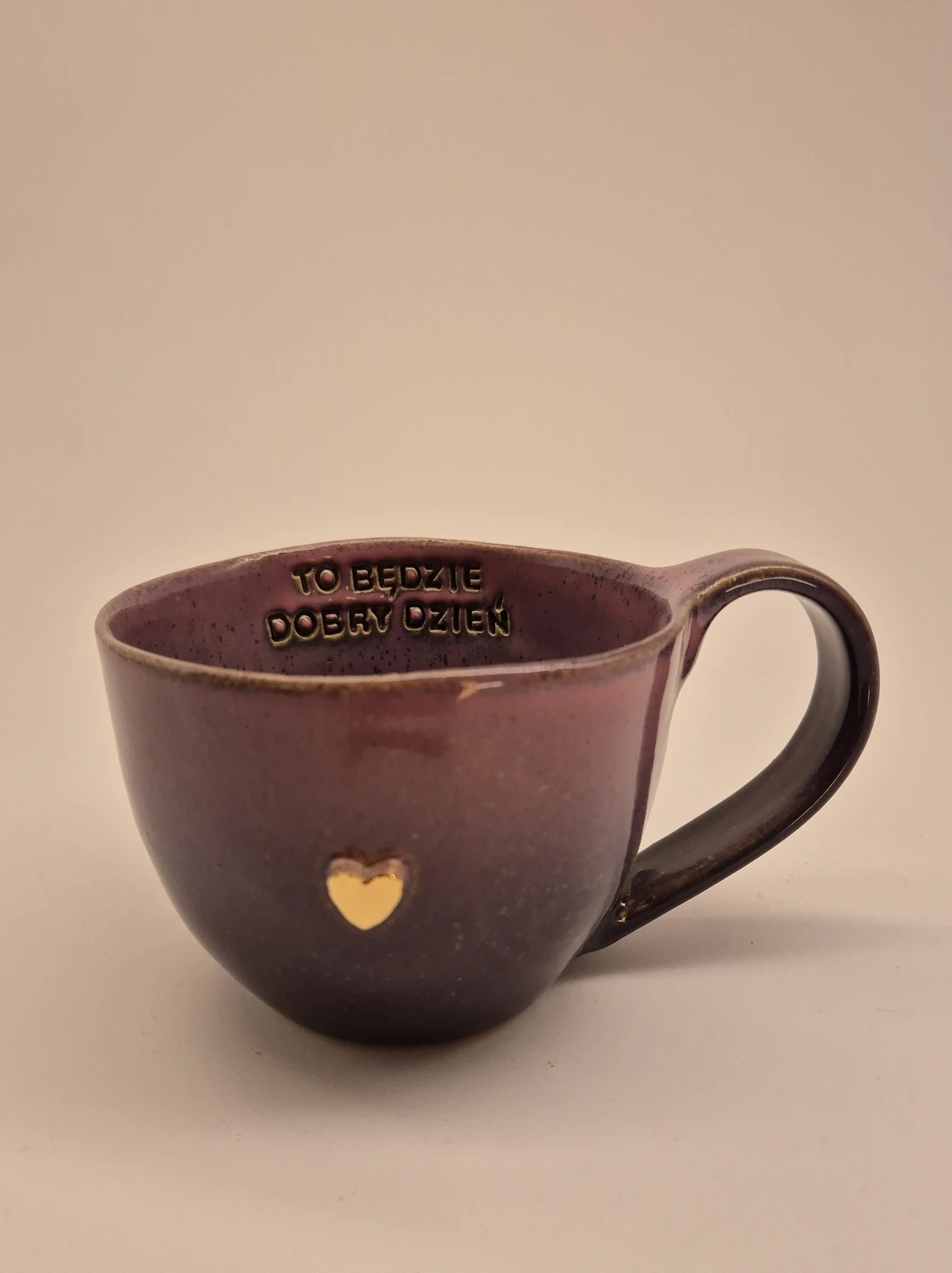 KUBEK CERAMICZNY 400 ML FIOLETOWO-RÓŻOWY Z AFIRMACJĄ - TO BĘDZIE DOBRY DZIEŃ