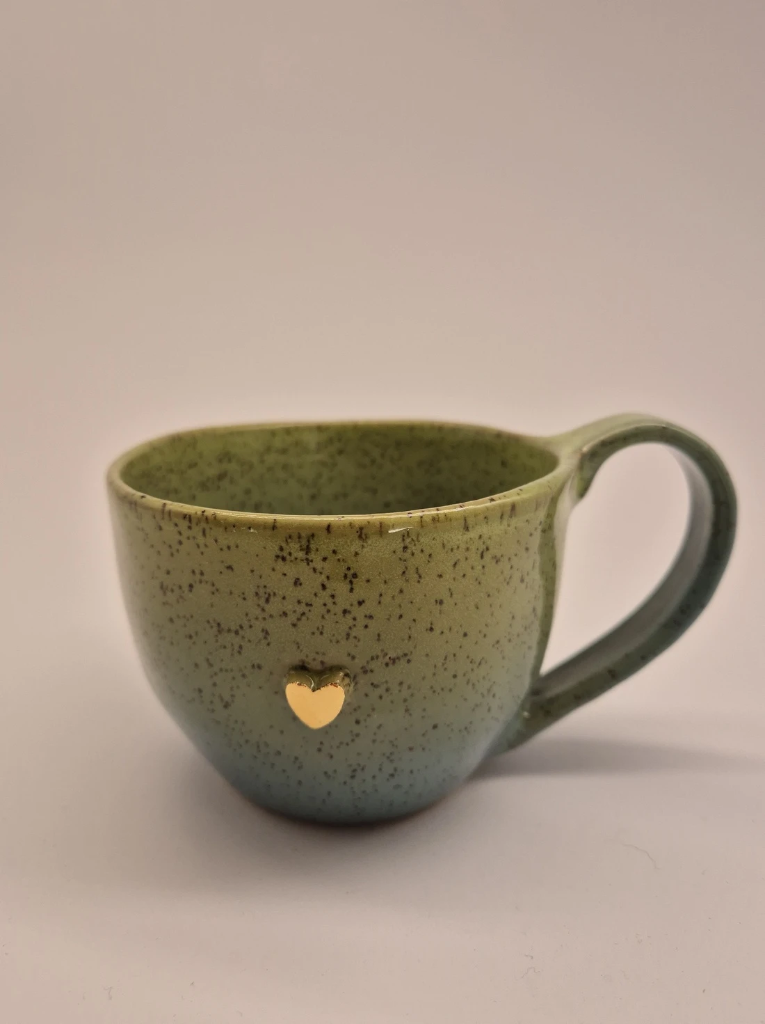 KUBEK CERAMICZNY 400 ML LIMONKOWO-TURKUSOWY Z SERDUSZKIEM