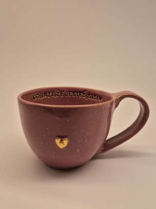 KUBEK CERAMICZNY 400 ML RÓŻOWY Z NAPISEM - DOBRZE, ŻE JESTEŚ SISI