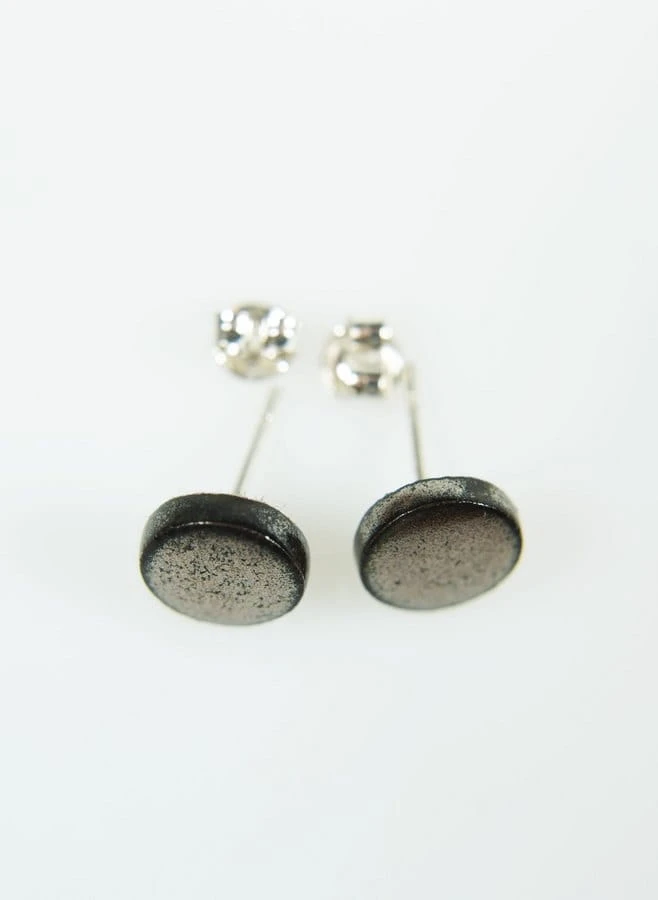 Drobne ceramiczne wkrętki do uszu w kolorze brązowo-czarne.