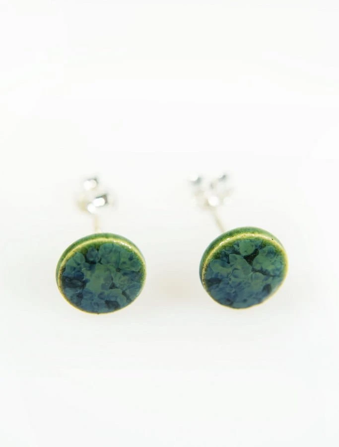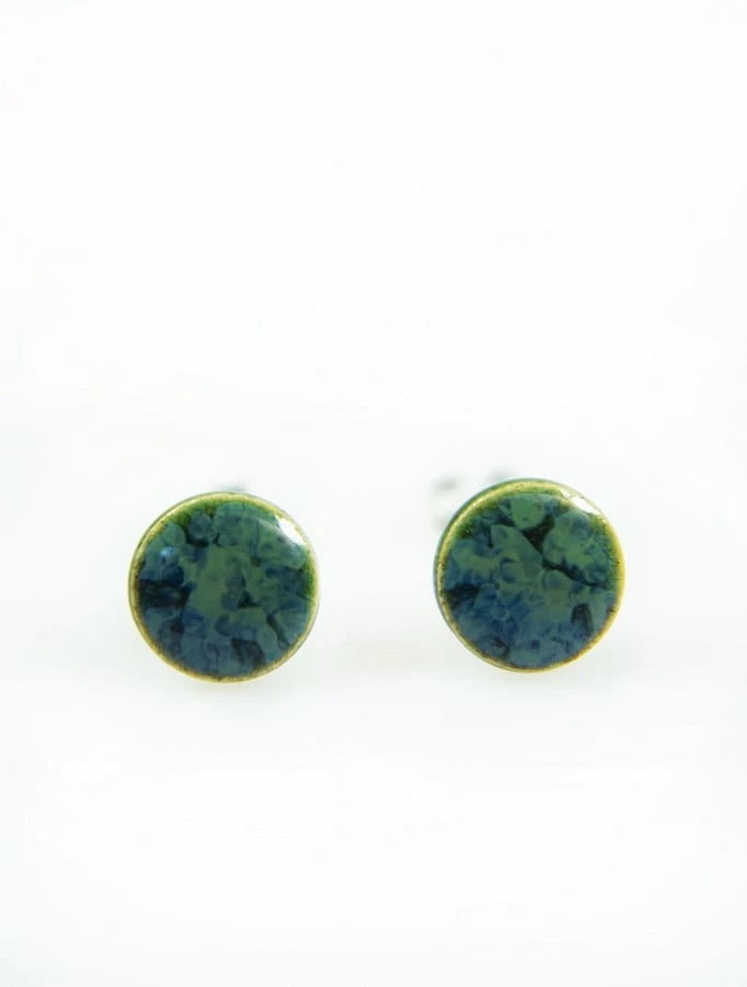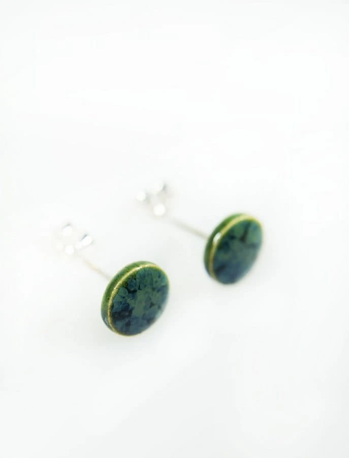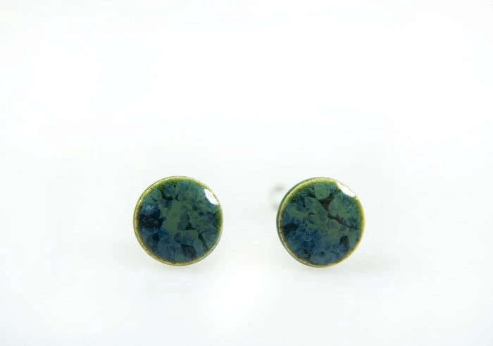 Drobne ceramiczne wkrętki do uszu w granatowo-morskim.