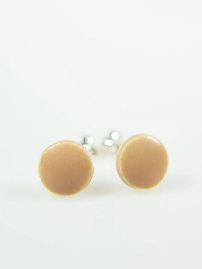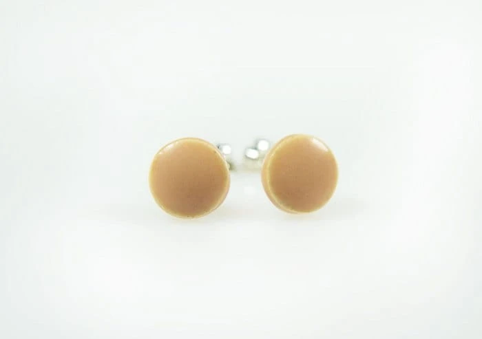 Drobne ceramiczne wkrętki do uszu w kolorze łososiowym.