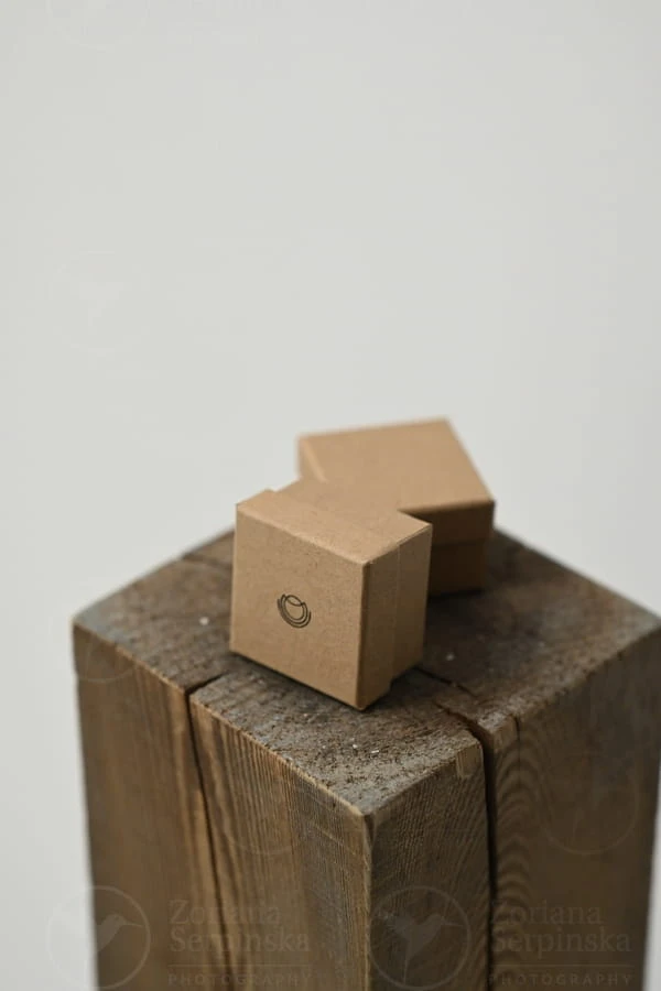 Kolczyki pakujemy w eleganckie pudełko z eko tekturki.
