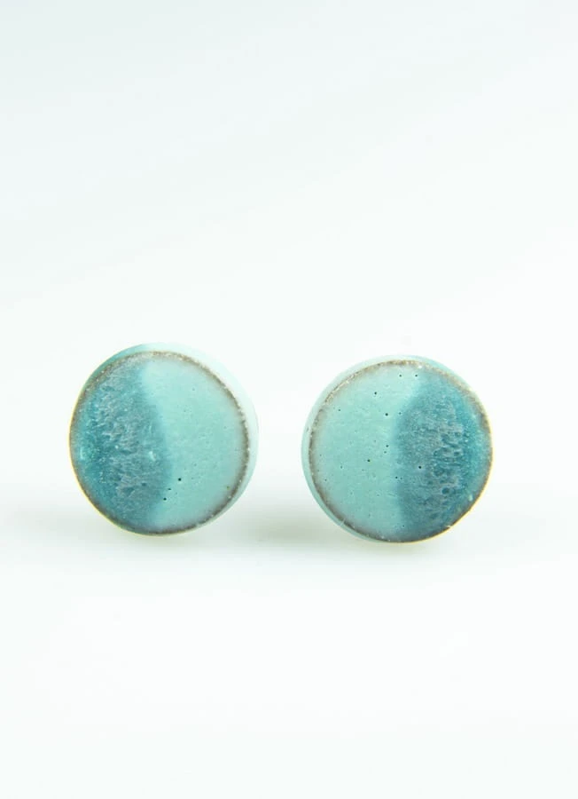 Kolczyki ceramiczne matowe błękito-niebieskie na brązowej glinie