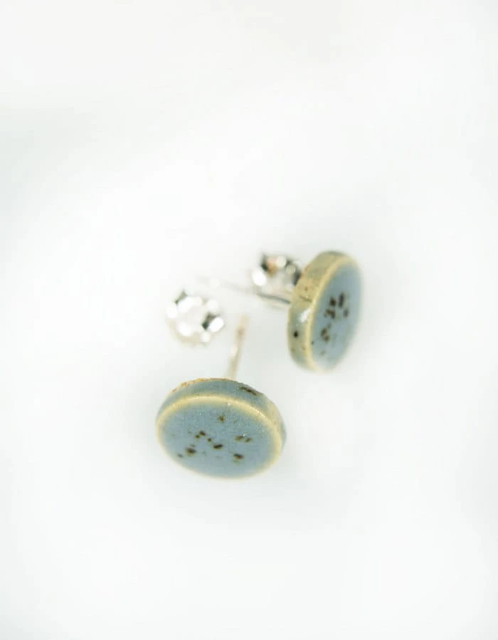 Drobne ceramiczne wkrętki do uszu w kolorze matowe niebieskie nakrapiane.