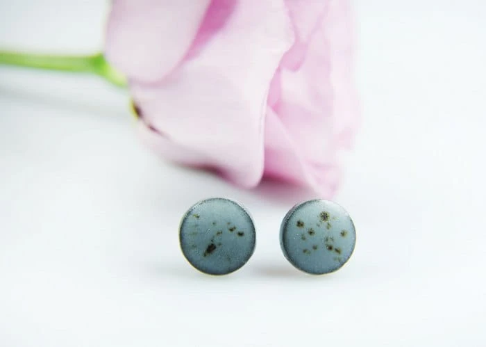 Kolczyki ceramiczne matowe niebieskie nakrapiane
