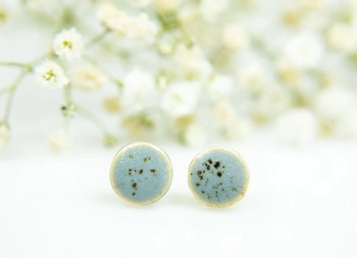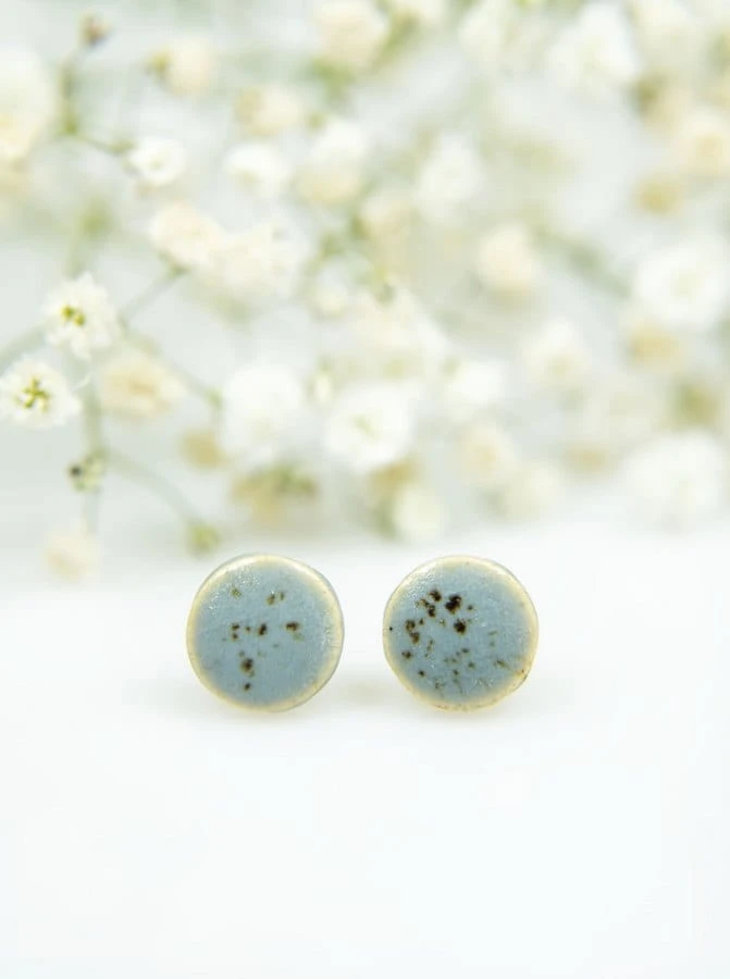 Kolczyki ceramiczne szaroniebieskie nakrapiane