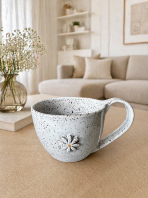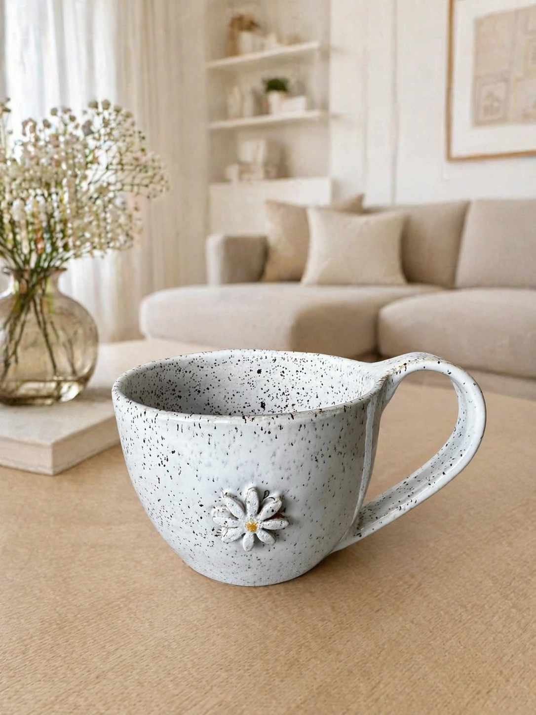 Kubek ceramiczny 400 ml stracciatella z kwiatem