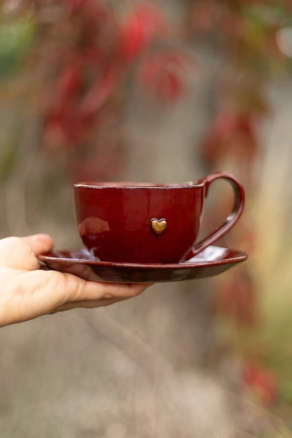 Każdy egzemplarz powstaje ręcznie w pracowni Gaja Arte, dlatego ma lekko organiczną linię, naturalne różnice w szkliwie i indywidualny charakter. Pięknie prezentuje filiżankę 300 ml lub kubek 400 ml w tym samym kolorze, tworząc harmonijny i estetyczny zestaw.