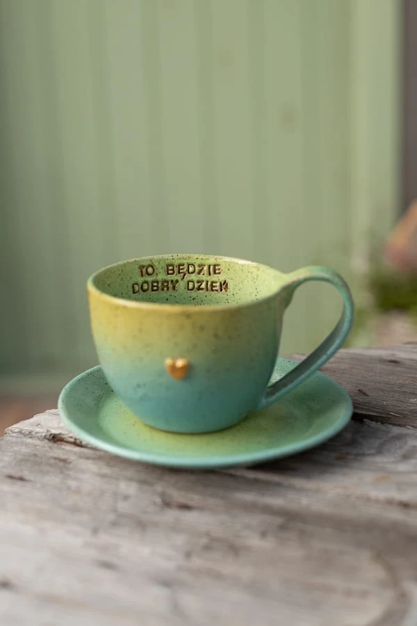 Każdy spodek powstaje ręcznie w pracowni Gaja Arte, dlatego ma delikatnie organiczną formę i subtelne różnice w szkliwie. Pięknie prezentuje filiżankę 300 ml lub kubek 400 ml w tym samym kolorze, tworząc spójny i świeży wizualnie komplet.